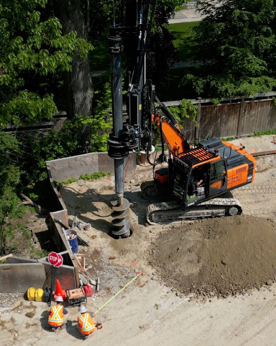 Engineered excavation support and shoring systems in Windsor, Ontario. Soldier piles & lagging, caisson walls, internal and external bracing, and retaining solutions.